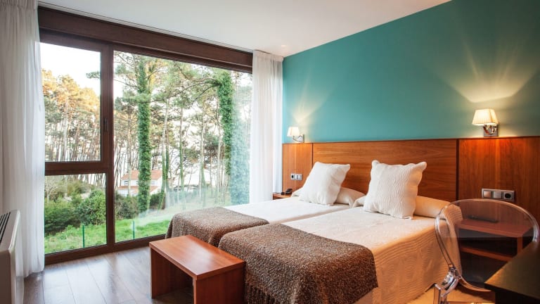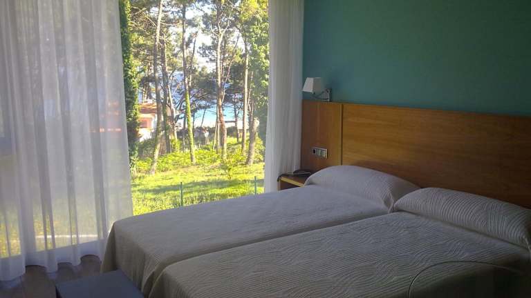 Das Hotel befindet sich an der Costa da Morte in Galizien, nur 100 Meter vom schönen Strand Playa de Langosteira entfernt. Es liegt in einem Pinienwald, in der Nähe der Ortschaft Fisterra, die nach einem kurzen Spaziergang entlang der Küstenpromenade erreicht werden kann. Santiago de Compostela liegt 80 km entfernt.