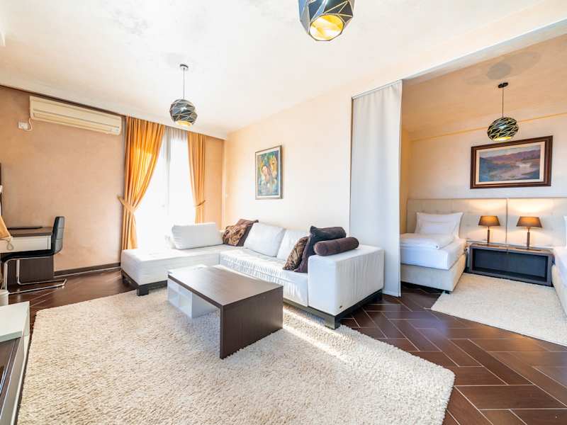 Das Hotel Alexandar Lux bietet stilvolle Apartments mit kostenfreiem Wifi und einem Flachbild-TV. Jedes Apartment ist mit einer komplett ausgestatteten Küchenzeile, eleganten, weissen Ledersofas und einem dunklen Fliesenboden ausgestattet. Die Räume sind heimelig gestaltet und verfügen über edle Tapeten. Zusätzliche Bequemlichkeiten wie eine 24-Stunden-Rezeption, Zimmerservice und verschiedene Freizeitangebote stehen zur Verfügung.