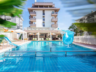 • Privatstrand 250 m vom Hotel entfernt mit reserviertem Sonnenschirm und zwei bequemen Liegen. → INFO: der Strand von Bibione bietet ein reichhaltiges Unterhaltungsprogramm für Kinder, Miniclub und Sportaktivitäten. • Schwimmbad auf zwei Ebenen mit 30 m langer Wasserrutsche. • Beheizter Whirlpool am Pool. • Zwei Sonnenterrassen mit Liegestühlen und Sonnenschirmen. • Unbegrenztes Wi-Fi im gesamten Hotel inklusive. • Kostenloser Fahrradverleih für 2 Stunden pro Tag. • Parken. ZAHLUNG ✔ Alexander Lounge Bar & Bistro. ✔ E-Bike mit Tretunterstützung.
