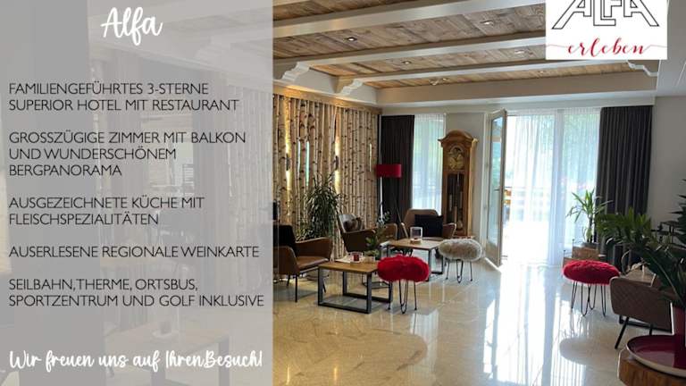 Das Hotel Alfa befindet sich in Leukerbad, nur 100 m von der Seilbahn Torrentbahn entfernt. Die Gemmibahn ist in 1,5 km erreichbar. Die Umgebung bietet herrliche Bergpanoramen und zahlreiche Möglichkeiten für Naturerlebnisse.