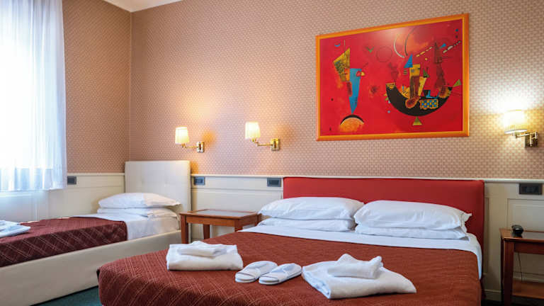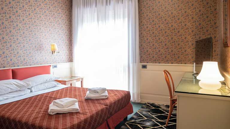 Die Zimmer sind mit Teppichböden ausgestattet und verfügen über ein Doppelbett. Zudem sind Zustellbetten auf Anfrage verfügbar. In den Zimmern stehen ein Safe, eine Minibar, ein Kühlschrank oder Minikühlschrank, ein Telephon mit Direktwahl, ein TV-Gerät, ein Wecker und gegen Gebühr auch WiFi zur Verfügung. Jedes Zimmer hat ein Badezimmer mit Dusche und Badewanne sowie einen Haartrockner. Das Hotel bietet sowohl Nichtraucher- als auch Raucherzimmer an, ebenso sind rollstuhlgerechte Zimmer mit barrierefreiem Badezimmer verfügbar.
