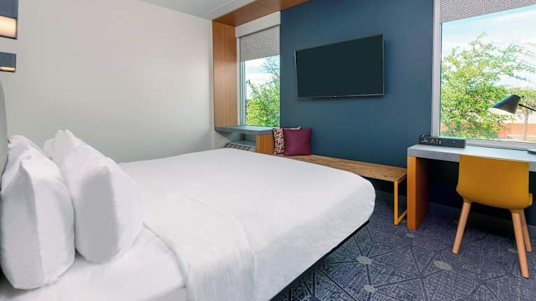 Die geraeumigen Zimmer des Aloft Jacksonville Airport sind mit Klimaanlage und Heizung ausgestattet und verfügen über Teppichböden sowie hohe Decken. Zur Ausstattung gehören ein Kingsize- oder Queensize-Bett, ein Kühlschrank, eine Kaffee- und Teezubereiter, ein Schreibtisch und ein TV-Gerät. Im Badezimmer stehen eine Dusche, eine Badewanne, Kosmetikartikel und Handtücher zur Verfügung.