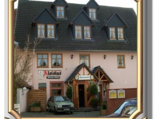 Lassen Sie Sich bei uns in familiärer Atmosphäre verwöhnen und erholen Sie Sich vom Alltagsstress. Unsere Zimmer sind im Landhausstil eingerichtet und laden zum Entspannen ein. Auch für den Geschäftsreisenden sind unsere Räumlichkeiten ideal. Alle sind selbstverständlich mit Dusche/WC, Telefon, Kühlschrank/LCD Kabel-TV. WLAN-Anschluß ist verfügbar. Durch unsere herrliche Lage im Stadtkern Bruchköbels können Sie bei uns den Zauber der Altstadt entdecken und sind gleichzeitig nur 20 Km von der Stadtmetropole Frankfurt/Main entfernt, die durch die Direktanbindung an die A66 bequem und schnell zu erreichen ist. Schauen Sie auf unseren Seiten nach, wie wir Sie nach einem anstrengenden Tag kulinarisch verwöhnen können, bzw. wie die Räumlichkeiten aussehen, in denen Sie Sich ungestört zurückziehen und erholen können.