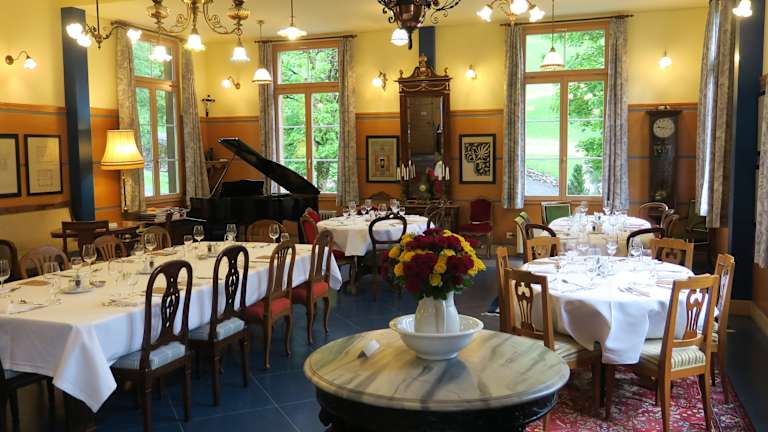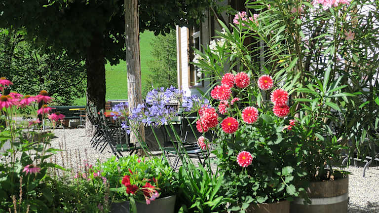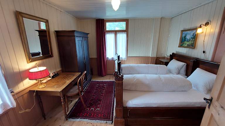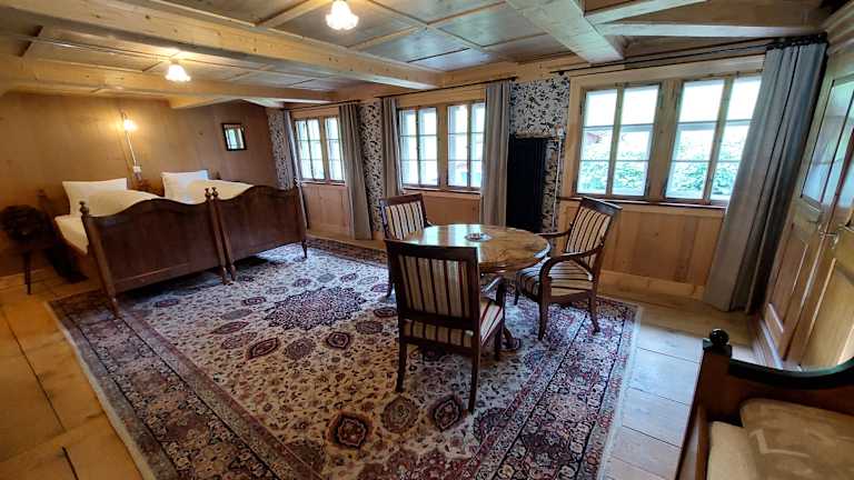 Der Alpenhof ist anders + historisch einfach luxeriös + echt + bodenständig + Der Alpenhof ist ein Kleinod, das sich dem qualitätsbewussten, interessierten Besucher eröffnet und durch seinen Charme, seine Eigenart und seine Authentizität auszeichnet. + Übernachtung mit Halbpension + Historische Zimmer + Gaststube + Biedermeier- und Lesestübli + Saal für Festanlässe + Flügel und Klavier + Gartenterrasse + Garten + WLAN + Mountain-Bike + Velo und Auto Parkplätze