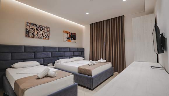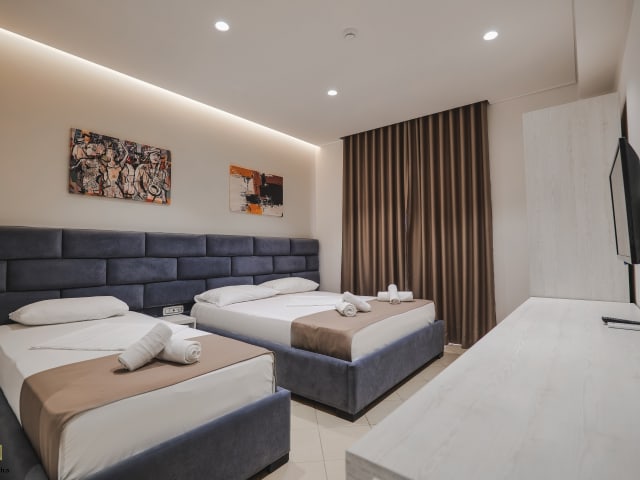 Das Hotel befindet sich in Saranda, direkt am Strand und ist lediglich 300 Meter vom Flamingo Beach sowie 800 Meter vom Santa Quaranta Strand entfernt. Die umliegende Gegend bietet Einkaufsmöglichkeiten wie einen Supermarkt für den täglichen Bedarf sowie eine entspannende Gartenanlage.