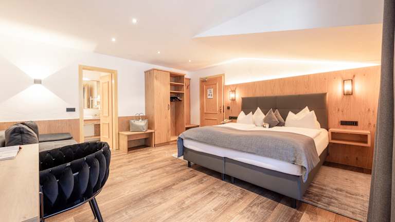 Wir verfügen über verschiedene Zimmervarianten und können so jedem Urlaubswunsch entsprechen. Sie werden die besondere Macht unseres guten Hausgeistes spüren, der für Gemütlichkeit und Sinnesfreuden zuständig ist. Außerdem setzen wir auf natürliche Materialien und heimelige Atmosphäre. Alle Zimmer verfügen über Bad/WC oder Dusche/WC, Fön, Telefon, Flat-TV, kostenloser W-Lan Anschluss, Safe, eine gemütliche Sitzgelegenheit und einen eigenen Balkon (Nichtraucherzimmer).