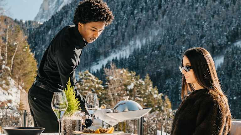 Von A = Aufstehen bis Z = Zu Bett gehen stehen im Adults Only Hotel - Alpin Garden alle Zeichen auf Genuss! Das Frühstück im Alpin Garden wird direkt am Tisch serviert - genieße Deinen Cappuccino auf der Terrasse mit panoramischem Blick zum Langkofel und dem Sellastock. Das Restaurant ist elegant und stilvoll eingerichtet und bietet eine entspannte und gemütliche Atmosphäre, die perfekt für romantische Abendessen oder besondere Anlässe geeignet ist. Die Menüs sind sorgfältig zusammengestellt und werden mit Liebe von einem erfahrenen Küchenteam zubereitet. Neben dem Restaurant verfügt das Alpin Garden Luxury Maison auch über einen beeindruckenden Weinkeller, der eine große Auswahl an lokalen und internationalen Weinen bietet. Gäste können eine Weinprobe genießen oder ein Glas Wein aus einer umfangreichen Auswahl bestellen, um ihr kulinarisches Erlebnis zu ergänzen.