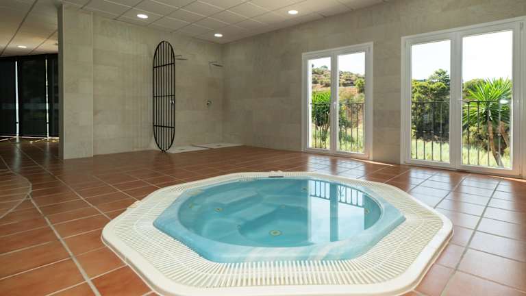 Gäste haben die Möglichkeit, im Wellness-Bereich zu entspannen, der einen Innenpool, eine Sauna und einen Whirlpool umfasst. Zusätzlich bietet der Garten Raum zur Erholung und Entspannung.