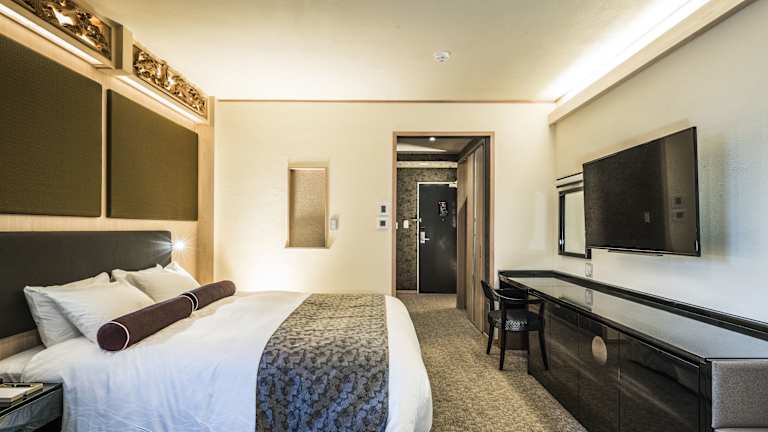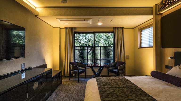 Alle klimatisierten Zimmer sind mit einem Essbereich, einem Flachbild-Sat-TV, einem Schreibtisch sowie einem eigenen Badezimmer ausgestattet. Letzteres verfügt über eine Whirlpool-Badewanne, eine Dusche, einen Badezimmer-TV, einen Haartrockner und ein Hightech-WC. Zu den weiteren Annehmlichkeiten gehören kostenfreie Pflegeprodukte, darunter eine Zahnbürste. Einige Zimmer bieten einen Blick auf den Fluss Kamo und das Kawadoko, eine Aussenterrasse über dem Fluss.