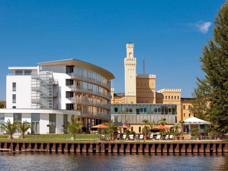 Zusammenspiel von Kunst und Architektur am Wasser. Eine Idee überzeugt Hotelgäste und Besucher: ein gekonntes Zusammenspiel von moderner und historischer Architektur, Kunst und zeitgenössischem Design. Das Interieur wurde vom englischen Designer Jasper Morrison gestaltet. Die Architekten Rave haben mit dem Neubau einen Spannungsbogen zur historischen Architektur Ludwig Persius’ geschaffen. Die 123 modern eingerichteten Zimmer und Suiten, teilweise mit Balkon und Blick auf die Havel oder auf historische Bauwerke von Persius, laden zum besonderen Verweilen ein.