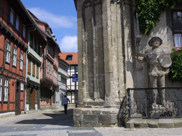 Die sehr zentrale Lage unseres kleinen familiengeführten Hotels unmittelbar am Marktplatz gleich neben dem historischen Rathaus von Quedlinburg macht alle Erkundungen im Welterbe fussläufig möglich. Das Haus selbst ist ein im 17.Jahrhundert erbautes Fachwerkgebäude. Während der denkmalgerechten Sanierung haben wir besonderen Wert darauf gelegt, den Charakter und die ursprüngliche Identität des Hauses zu erhalten. Ökologische Baustoffe und der Erhalt alter Substanz, gepaart mit einem zeitgemäßen Komfort garantieren ein angenehmes Wohnen mit dem authentischen Gefühl einer längs vergangenen Zeit. So wurde der Dielenfußboden sorgsam restauriert und aufgearbeitet. Die wieder mit Lehm verputzen rekonstruierten Fachwerkwände und -decken bieten ein angenehmes Raumklima und wurden mit ökologischen Farben gestaltet und mit kunstvoller Wandmalerei versehen. Die Möbel, unaufdringlich im schlichten Shaker-Stil, und die stilvollen, natürlichen Stoffe unterstreichen den Charme der Räumlichkeiten. Jedes unserer Zimmer ist individuell eingerichtet. Die liebevolle und feinfühlige Gestaltung im Inneren unseres Hauses soll Ihnen zeigen, wie sehr es uns am Herzen liegt, dass Sie sich bei uns wohlfühlen. Vorab zur freundlichen Beachtung: Unser 350 Jahre altes Fachwerkhotel verfügt über keinen Fahrstuhl und keine Tiefgarage, Parkplätze in der Nähe sind vorhanden. Unsere Zimmer, die sich über 3 Etagen verteilen sind über das noch im Originalzustand erhaltene historische Treppenhaus zu erreichen, daher können wir keine Barrierefreiheit bieten. Wir führen unser Haus als Nichtraucher-Hotel. Wir können keine Haustiere aufnehmen.