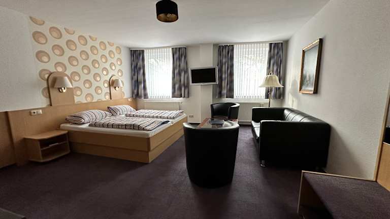 Das Hotelteam empfängt Sie herzlich in den angenehm eingerichteten Wohneinheiten (Einzelzimmer, Doppelzimmer, Zweibettzimmer). Komponente jeder Wohneinheit ist ein Badezimmer. Im eigenen Bad befinden sich eine Badewanne oder Dusche und ein Haartrockner. Zum Zimmerinventar zählt ein Schreibtisch. Ansonsten zählt ein Fernseher zu jedem Zimmer. Als kleines Willkommensgeschenk erwartet Sie eine Flasche Mineralwasser auf Ihrer Wohneinheit.