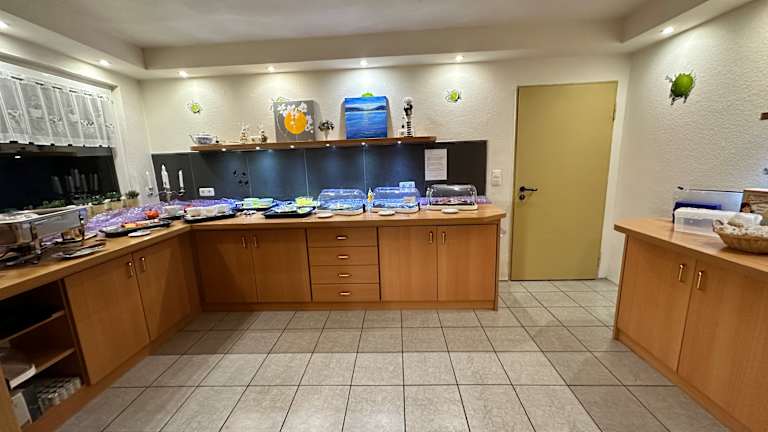 Starten Sie Ihren Tag mit einer vielfältigen Auswahl an frischen und auch regionalen Lebensmitteln. Unser Buffet bietet eine große Auswahl an knusprigen Brötchen, Brot, aromatischem Kaffee und Tee. Für Liebhaber süßer Köstlichkeiten gibt es eine Auswahl an Marmeladen, Honig, Joghurt und Cerealien. Auch herzhafte Optionen wie Wurst, Käse, Rührei, Bacon und frisches Obst stehen für Sie bereit. Unser Frühstücksbuffet ist liebevoll zusammengestellt, um Ihren Morgen perfekt zu machen und Ihnen einen energiereichen Start in den Tag zu ermöglichen. Wir freuen uns, Sie bei uns willkommen zu heißen und Ihnen einen angenehmen, genussvollen Start in den Tag zu bereiten!