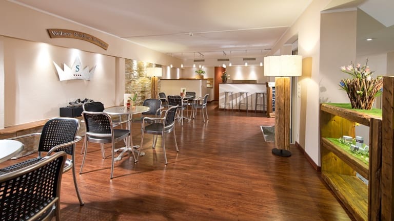Zum Haus gehört ein Wellnessbereich mit Finnischer Sauna, Dampfsauna, Salzgrotte, Infrarotwärmekabine und Eisdusche. In der Saunalounge werden kleine Speisen und Getränke angeboten. Der Beautybereich bietet Massagen und Kosmetik- sowie Bodyanwendungen. Das Haus verfügt über ausgebildete Nordic Walking und Yoga Trainer, die vor Ort geführte Wanderungen und Kurse anbieten.