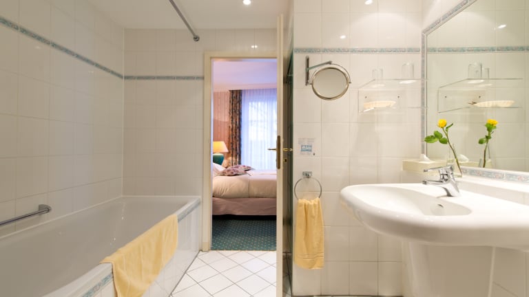 Jede Wohneinheit besitzt ein Badezimmer. Das private Bad ist mit einer Badewanne oder Dusche, einem Bademantel und einem Haartrockner ausgestattet. Ein bequemer Sitzbereich gehört auch dazu. Minibar, Telefon, Fernseher und ein Schreibtisch sind auch vorhanden. Zum standardmäßigen Zimmerinventar gehören Bademantel und Slipper. Die Einzel- und Doppelzimmer sind ca. 24 qm groß. Die Suiten verfügen bei einer Größe von 40qm über einen separaten Wohn- und Schlafbereich.