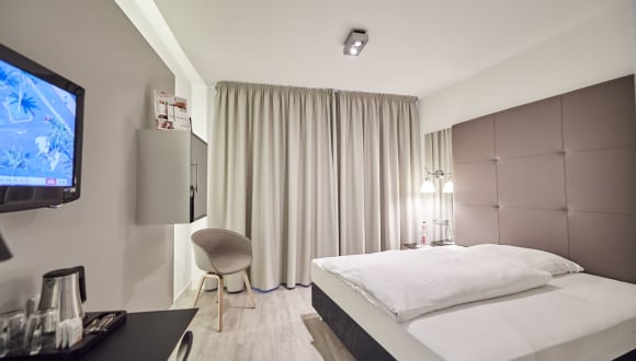 129 stylisch eingerichtete Nichtraucher Zimmer mit Aircondition, gefüllter Minibar, Safe, Flatscreen, High speed WLAN, 3 fach Verglasung wärmegedämpft sowie teilweise mit Pollenfilter.