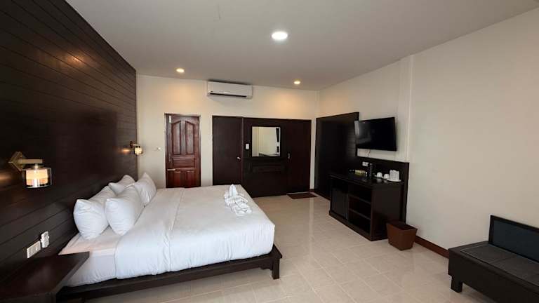 Das Amantra Resort & Spa auf der Insel Koh Lanta bietet UrlauberInnen eine wundervolle Lage direkt am Sandstrand. Das Hotel verfügt über eine Vielzahl von Annehmlichkeiten wie einen Außenpool, ein Restaurant und kostenfreies WLAN. Die Zimmer sind komfortabel eingerichtet und verfügen über Klimaanlage, einen Balkon oder eine Terrasse und einen Minikühlschrank. Genießen Sie die entspannte Atmosphäre und die vielfältigen Freizeitmöglichkeiten wie Wassersport, Radfahren und Golfen. Auch Familien mit Kindern kommen auf ihre Kosten, dank des Kinderpools und des Kinderspielplatzes.