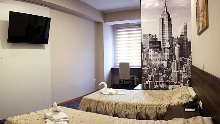 Das Hotel Ambasador befindet sich in zentraler Lage zwischen der russischen Botschaft und dem orthodoxen Tempel Soboren hram. In unmittelbarer Nähe finden Sie viele öffentliche Einrichtungen. Die National Telekom Arena ist nur 5 Gehminuten entfernt. Der Flughafen Skopje ist etwa 17 km entfernt.