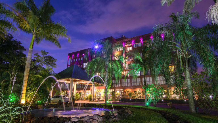 Das Hotel befindet sich etwa 900 m vom Zentrum von Puerto Iguazú entfernt und ist nur wenige Meter vom Dreiländereck Hito Tres Fronteras gelegen. Die Entfernungen zum Stadtzentrum betragen ca. 900 m, zum Bahnhof ca. 1.5 Km. Die Umgebung bietet Zugang zu zahlreichen Attraktionen und Naturerlebnissen, insbesondere den nahegelegenen Iguazú-Wasserfällen, die ca. 15 km entfernt sind.