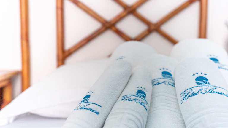 Die klimatisierten Zimmer im Hotel America verfügen über ein eigenes Bad mit kostenlosen Pflegeprodukten. Die meisten Zimmer bieten einen Balkon oder eine private Terrasse mit Meerblick. Zur Ausstattung gehören ein Doppel- oder Queensize-Bett, eine Minibar, ein Schreibtisch und ein Safe. Hausschuhe, kostenlose Pflegeprodukte sowie ein Kühlschrank sind ebenfalls vorhanden. Die Badezimmer sind mit Dusche und Badewanne ausgestattet und bieten zusätzliche Annehmlichkeiten wie einen Haartrockner und Bademäntel.