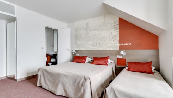 49 chambres à la décoration raffinée,un équipement de qualité,double vitrage,mini bar,Canal sat,connexion WIFI gratuite, salles de bains entièrement rénovées en douche WC ou bain WC. Climatisation réversible dans 25 chambres, accueil 24h/24h, nos équipes vous informent sur les meilleurs sites à visiter. Notre établissement détient l' Ecolabel Européen depuis 2011, nous vous offrons un petit déjeuner issu de l'agriculture biologique et de produits locaux en circuit court.