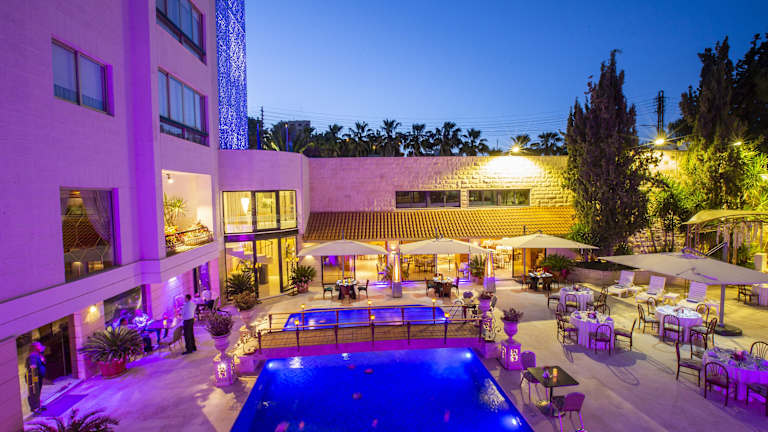 Das Amman International Hotel befindet sich in Amman, ideal an der Queen Rania Street gelegen. Es ist nur wenige Gehminuten von der Jordan University und der Almadena Almunawara Street, einer der bekanntesten Einkaufsstrassen in Amman, entfernt. Der Flughafen ist in etwa 30 Fahrminuten erreichbar, während das Royal Culture Center, das Militärmuseum und die Sports City nur rund 10 Fahrminuten entfernt liegen.