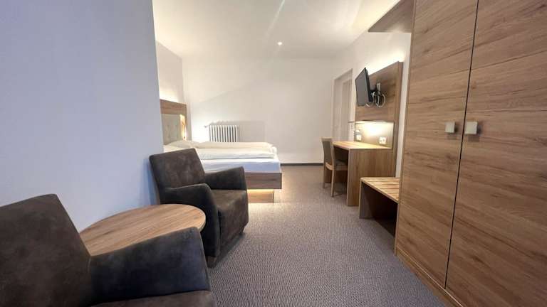 Die hellen Zimmer im Hotel an der Hauptallee sind mit Kabel-TV, einer Sitzecke und einem eigenen Bad ausgestattet. Details zur Ausstattung wie Grösse oder spezielle Merkmale sind nicht angegeben.