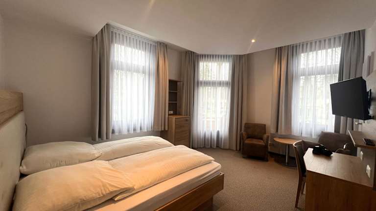 Das Hotel an der Hauptallee befindet sich zentral gegenüber dem Kurpark von Bad Pyrmont und ist nur einen 10-minütigen Spaziergang vom S-Bahnhof Bad Pyrmont entfernt. Das historische Schloss von Bad Pyrmont liegt ebenfalls in der Nähe, nur 8 Minuten zu Fuss entfernt. Die Autobahn A2 ist in 45 Minuten erreichbar.