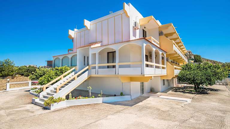 Das Hotel Anagros befindet sich in zentraler Lage in Archangelos, ca. 3 km vom Strand entfernt. Die Entfernung zum Stadtzentrum beträgt etwa 300 m, während der Bahnhof nur 50 m entfernt ist.