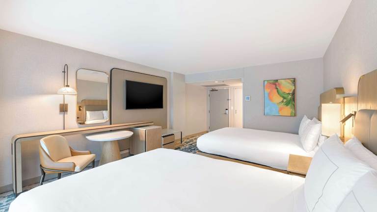 Die Zimmer im Hilton Anaheim sind geräumig und modern eingerichtet. Sie verfügen über einen Flachbild-Kabel-TV, eine Kaffeemaschine, einen Schreibtisch und ein Bügeleisen/-brett. Jedes Zimmer bietet den Gästen den Komfort, den sie für einen angenehmen Aufenthalt benötigen.