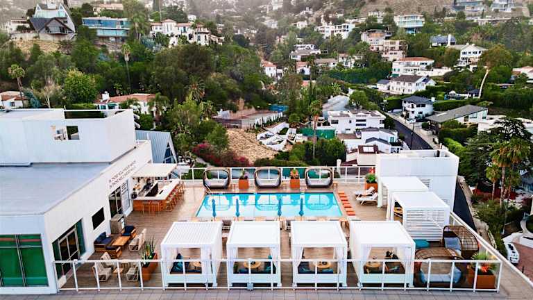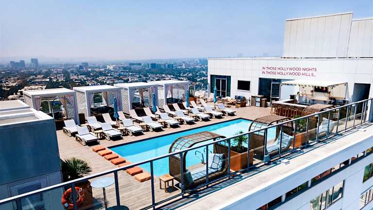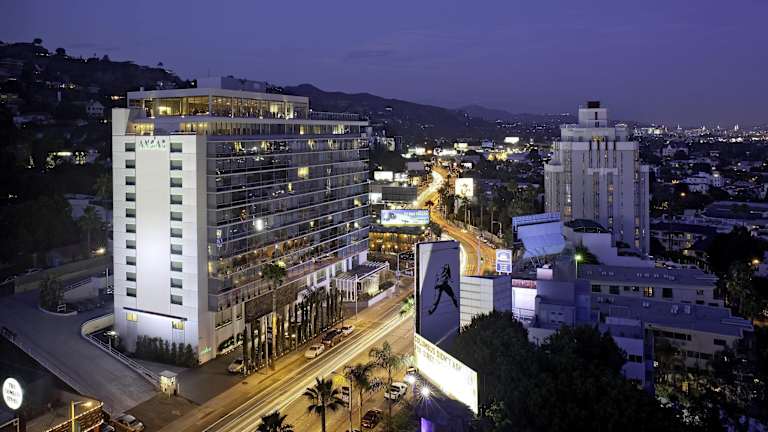 Das Hotel Andaz West Hollywood befindet sich im angesagten West Hollywood, direkt am Sunset Boulevard und bietet eine zentrale Lage in der Nähe zahlreicher Sehenswürdigkeiten. Das legendäre House of Blues liegt gegenüber, und Klassiker wie der Viper Room sind bequem erreichbar. Die Entfernung zu den Universal Studios Hollywood beträgt ca. 7 km, und zum chice Rodeo Drive sind es ca. 5 km. Die ruhige Umgebung ermöglicht entspannte Ferien, während die Hollywood Hills das Panorama abrunden.