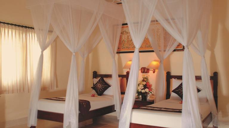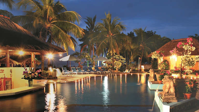 Das Aneka Lovina Villas & Spa befindet sich direkt am berühmten Lovina Beach an der Nordküste von Bali. Der Strand ist nur etwa 300 Meter entfernt und das Zentrum von Lovina mit Restaurants und Einkaufsmöglichkeiten erreichen Sie bequem zu Fuß. Die Lage des Hotels bietet zudem eine gute Ausgangsbasis, um die zahlreichen Sehenswürdigkeiten von Bali zu erkunden. Der Flughafen Denpasar ist etwa 2 Autostunden entfernt.