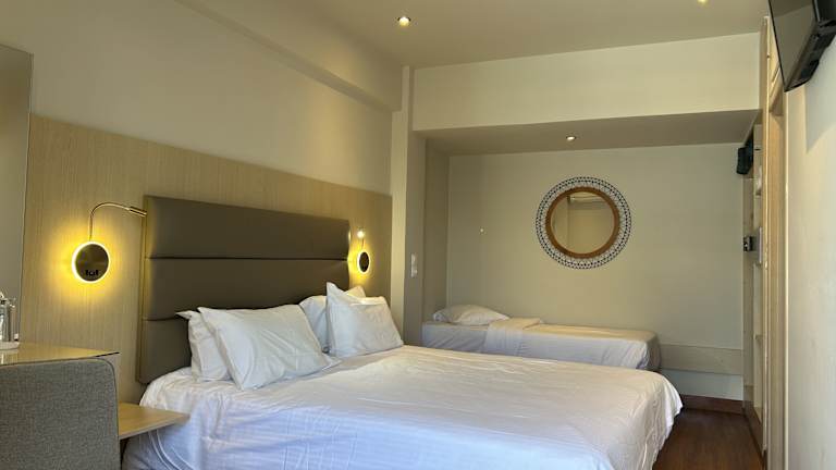 Die Zimmer sind klimatisiert und verfügen über eine Heizung. Die meisten Unterkünfte bieten einen Balkon und sind mit einem Queensizebett sowie einem Sofabett ausgestattet. Ein Safe, eine Minibar, ein Telefon, ein TV-Gerät und WiFi ohne Gebühr sind ebenfalls vorhanden. Im Badezimmer stehen eine Dusche und eine Badewanne sowie ein Haartrockner zur Verfügung. Es werden Familien-, Nichtraucher- und Raucherzimmer angeboten.