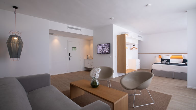 Das Hotel verfügt über 108 Nichtraucherzimmer, die über einen Aufzug erreichbar sind. Die Zimmer sind komfortabel eingerichtet und bieten eine Klimaanlage, eine Heizung und einen Balkon oder eine Terrasse. Zur Ausstattung gehören auch ein TV, ein Safe, ein Schreibtisch und kostenfreies WLAN. Im Badezimmer finden Sie eine Dusche, eine Badewanne, einen Haartrockner und einen Kosmetikspiegel.