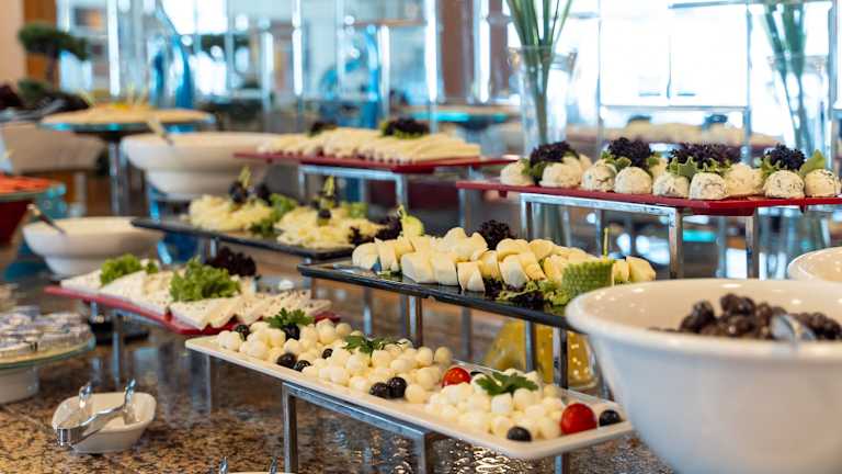 Das Hotel bietet verschiedene gastronomische Einrichtungen, darunter ein Restaurant, ein Café und eine Bar. Neben einem Frühstücksbuffet stehen auch Mittag- und Abendessen à la carte auf der Speisekarte. Es sind spezielle Verpflegungsangebote und Diätgerichte erhältlich.