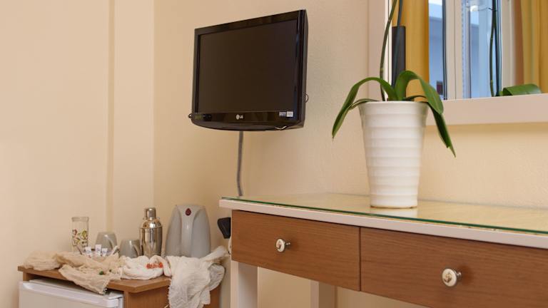 Die Zimmer sind modern ausgestattet und bieten Annehmlichkeiten wie Klimaanlage, Heizung, Balkon oder Terrasse mit Meer- oder Gartenblick. Sie verfügen über ein Doppelbett, Kühlschrank, Wasserkocher und kostenfreies Tee- und Kaffeezubehör. Zudem sind ein Bügelset, Telefon, Sat-TV, Radio und kostenloses Wifi vorhanden. Das Badezimmer ist mit Dusche und Badewanne ausgestattet und bietet einen Haartrockner sowie Kosmetikartikel. Nichtraucherzimmer stehen zur Verfügung.