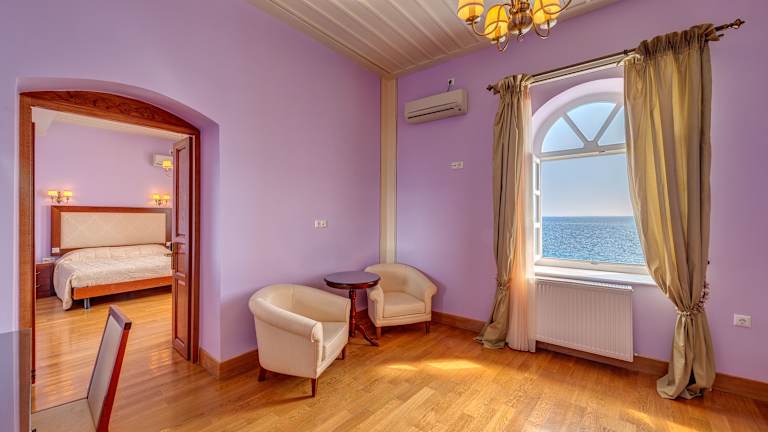 Die Zimmer und Suiten im Apollonion Palace Hotel sind wunderschön im klassischen Stil gestaltet und bieten einen komfortablen und eleganten Rückzugsort. Einige Zimmer verfügen über einen eigenen Whirlpool, in dem Sie sich entspannen können. Genießen Sie den Blick auf die Straßen der Stadt oder das Meer und lassen Sie sich von der charmanten Atmosphäre verzaubern.