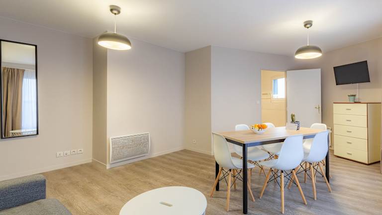 Die Residenz befindet sich im CITIS, dem Freizeitzentrum von Caen und ist in der Nähe der Ringstrasse sowie des Stadtzentrums gelegen. Zahlreiche Sehenswürdigkeiten, wie das Normandiemuseum, das Postmuseum und die Kirche Saint-Pierre sind in unmittelbarer Nähe zu finden. Das Schloss von Caen liegt ca. 2 km entfernt. Die nächsten Anbindungen an das öffentliche Verkehrsnetz befinden sich etwa 100 m entfernt, während die Einkaufsgelegenheiten ca. 500 m entfernt sind. Der Strand von Ouistreham ist in etwa 15 Minuten erreichbar.