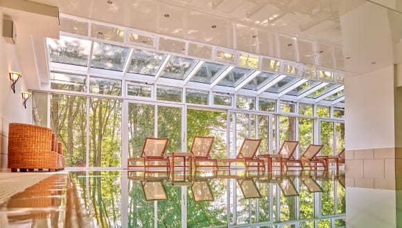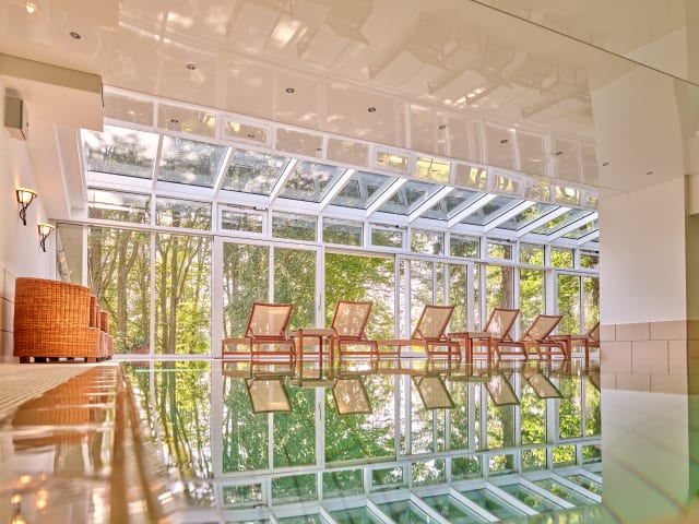 Der Wellnessbereich verfügt über 2 Schwefelwasser-Pools einer davon mit Massagedüsen, Gradierwerk, Finnischer Sauna, Steinsauna, Dampfbad, Panorama-Ruheraum. Dieser ist im Zimmerpreis mit inklusive. Wir vermieten auch E-Bikes.