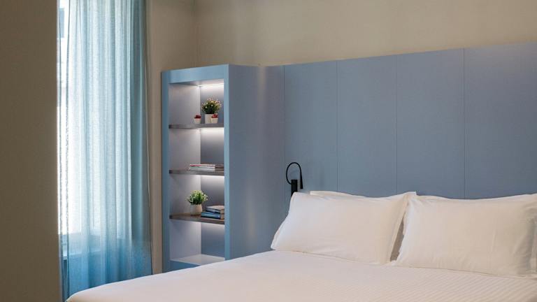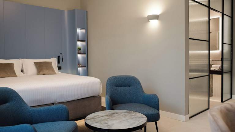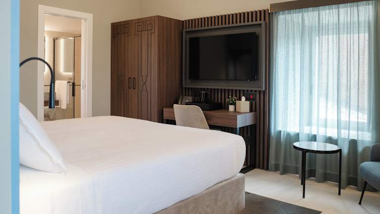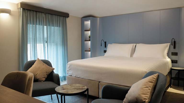 Die Zimmer bieten ein angenehmes Raumklima dank Klimaanlage (gegen Gebühr). Jedes Zimmer ist mit einem Doppelbett ausgestattet und es können auf Anfrage Zustellbetten bereitgestellt werden. Des Weiteren verfügen die Zimmer über einen Safe, eine Minibar und einen Schreibtisch. Zur Ausstattung gehören ein Direktwahltelefon, ein TV-Gerät mit Satellitenempfang, Pay-per-View, ein Radio und Wifi. Die Badezimmer sind mit einer Dusche, einer Badewanne, einem Bidet sowie Kosmetikartikeln und einem Haartrockner ausgestattet.