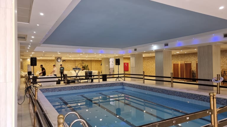 Die Aussenpoolanlage eignet sich hervorragend für aktive Erholung oder regelmässiges Aquatraining. Darüber hinaus gibt es verschiedene Angebote für Fitness, darunter ein Fitnessstudio, Aerobic und Massage-Anwendungen. Abends wird Live-Musik geboten.