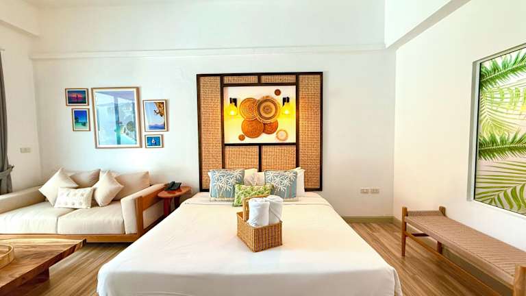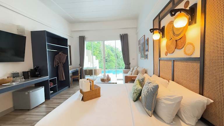 Die Zimmer sind mit Klimaanlage, einem Kühlschrank oder einer Minibar, einem Safe, einem Schreibtisch sowie einer Tee-/Kaffeemaschine ausgestattet. Jedes Zimmer verfügt über ein Badezimmer mit Dusche und Badewanne, Haartrockner, Bademäntel und Kosmetikartikeln. Zudem gibt es einen Balkon oder eine private Terrasse mit Blick auf das Meer. Zu den Annehmlichkeiten gehören auch Fernseher, WiFi (ohne Gebühr) und Hausschuhe.