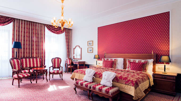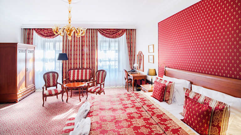 Die Zimmer sind mit Teppichböden, Doppel-, Queensize- oder Kingsize-Betten ausgestattet und verfügen über eine Klimaanlage, einen Safe, eine Minibar sowie einen Schreibtisch. Zur Standardausstattung gehören ferner eine Tee-/Kaffeemaschine, ein Telefon mit Direktwahl, ein TV-Gerät mit Satellitenempfang, ein Radio und ein DVD-Player. Jedes Zimmer hat ein Badezimmer mit Dusche und Badewanne, Haartrockner und Bademäntel.