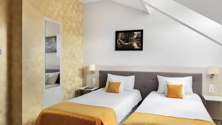 Die Zimmer sind klimatisiert und bieten ein Doppelbett sowie ein Sofabett. Ein Wasserkocher, ein Flachbild-TV und ein eigenes Bad mit Dusche sind ebenfalls vorhanden. Kostenfreie Pflegeprodukte und ein Haartrockner tragen zur Bequemlichkeit bei. Die Zimmer sind so gestaltet, dass sie ein angenehmes Raumklima gewährleisten. Zudem sind rollstuhlgerechte Zimmer mit barrierefreiem Badezimmer buchbar. Alle Zimmer sind Nichtraucherzimmer.