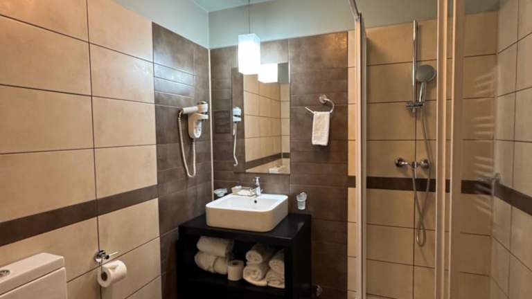 Das Hotel Arena ist ein modernes Businesshotel, das im Jahr 2008 eröffnet und 2012 komplett renoviert wurde. Es bietet eine freundliche Atmosphäre und erstreckt sich über zwei Etagen mit 32 Zimmern, darunter 2 Apartments, 25 Einzel- und 5 Doppelzimmer. Zur Ausstattung gehören eine Garderobe, Gepäckaufbewahrung und ein Safe. WLAN steht kostenfrei zur Verfügung, ein Zeitungsstand und die Möglichkeit zur Gepäckaufbewahrung sind ebenfalls vorhanden. Der Service am Empfang ist jederzeit hilfsbereit. Für Gäste stehen Parkiermöglichkeiten zur Verfügung, die nach Verfügbarkeit gebührenpflichtig sind. Zudem sind Tagungsräume für geschäftliche Veranstaltungen vorhanden.