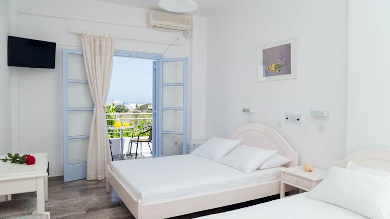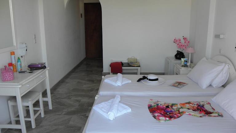 Die Zimmer des Hotels Areti sind Nichtraucherzimmer und umfassen verschiedene Typen wie Doppelzimmer, Dreibettzimmer und Vierbettzimmer. Alle Zimmer sind mit einem eigenen Balkon oder einer Terrasse ausgestattet und verfügen über moderne Annehmlichkeiten wie Klimaanlage, WLAN, Kühlschrank und Flatscreen-TV.