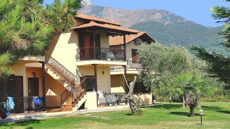WILLCOMMEN!!! Auf der wunderschönen Insel Thassos im Nordaegaeischen Meer erwartet Sie unsere Hotelanlage um Sie mit Qualitaet, Bequemlichkeit und auch der warmen, familiären Atmosphäre zu beherbergen. Gebaut in einer magischen Umgebung verzaubert Sie der Blick auf die Berge oder das Meer, weitab vom Laerm und Unruhen des Alltags, ideal fuer einen erholsamen Urlaub. Das Hotel besteht aus mehreren, im traditionellen Stil gehaltenen Gebaeuden, mitten in einem riesigen Garten mit Olivenbauemen, unzaehligen Blumen und grosser Rasenflaeche. Auch Ihre Kinder werden begeistert sein! Wir versprechen Ihnen eine angenehmen Aufenthalt in unseren zweirauemigen, gepflegten, schoen eingerichteten Zimmern, mit Klimaanlagen/Heizung, warmes Wasser wann immer Sie wollen, Telefon, Musikanlage, SAT-TV, Minibar, Haartrockner und grossen Balkonen mit traumhaftem Ausblick. Der schoene Sandstrand "Golden Beach" befindet sich in nur 400 m Entfernung zum Hotel. Unser Restaurant "Ariadni" bietet Ihnen hausgemachte Spezialitaeten in auch hier familiaerer Umgebung. Ihre Kinder haben die Gelegenheit sich auf unserem Spielplatz nach Herzenslust auszutoben. Die Erwachsenen entspannen sich an der Poolbar bei einem Eis, Drink, einem leckeren Snack oder einem erfrischenden Sprung in den Pool der Ihren Urlaub, zusammen mit unseren erschwinglichen Preisen, zu einem unvergesslichen Erlebnis macht!