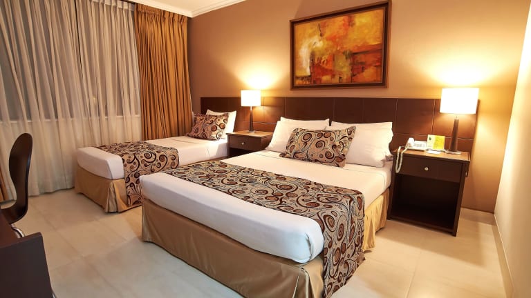 Die klimatisierten Zimmer sind mit einem Queensizebett und einem Sofabett ausgestattet, zudem sind Zustellbetten auf Anfrage verfügbar. Jedes Zimmer verfügt über einen Safe, eine Minibar, ein Telefon, einen Plasma-TV und WiFi. Die Badezimmer sind mit Duschen ausgestattet. Das Hotel bietet auch rollstuhlgerechte Zimmer und Familienzimmer.
