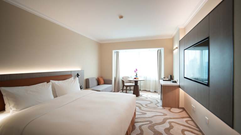 Das Hotel befindet sich in Pekings florierendem Geschäftsviertel, nahe dem Kulturministerium und dem Botschaftsviertel. Zahlreiche Einkaufs- und Unterhaltungsmöglichkeiten sind in unmittelbarer Umgebung. Die Metrostation ist nur wenige Gehminuten entfernt, und der Pekinger Bahnhof sowie die Verbotene Stadt sind in 10 Minuten erreichbar. Der internationale Flughafen ist in ca. 20 Minuten zu erreichen.