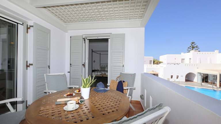 Das Hotel verfügt über 26 komfortable Zimmer, die mit modernen Annehmlichkeiten ausgestattet sind. Genießen Sie den Blick auf Naxos Stadt, das Meer oder die Berge von Ihrem eigenen Balkon oder Ihrer Terrasse. Die Zimmer bieten eine Klimaanlage, einen Safe, eine Minibar und kostenloses WLAN.